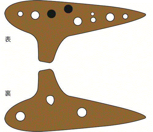 - オカリナで低いラの音を出すときにどこの穴を押さえればいいかを解説しています。